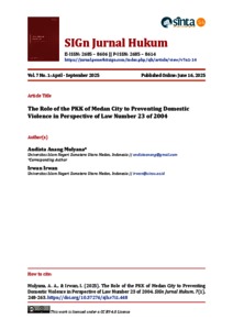 Mulyana, Andista Anang and Irwan, Irwan (2025) The Role of the PKK of Medan City to Preventing Domestic Violence in Perspective of Law Number 23 of 2004. SIGn Jurnal Hukum, 7 (1). pp. 248-263. ISSN 2685-8606