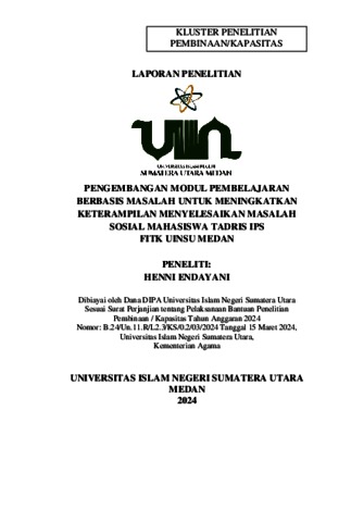 Endayani, Henni (2024) Pengembangan Modul PBM untuk Meningkatkan Keterampilan Menyelesaikan Masalah Sosial Bagi Mahasiswa Tadris IPS FITK UINSU Medan. Universitas Islam Negeri Sumatera Utara.