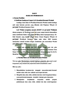 LAZ Alwasliyah Beramal (Washal) yang berada dibawah naungan organisasi masyarakat terbesar Alwashliyah memiliki potensi yang sangat besar tetapi masih banyak muzaki atau donatur yang belum tersentuh. Hal ini berakibat pada tidak tercapainya realisasi target fundraising yang ditetapkan oleh pemerintah. Penelitian ini bertujuan untuk mengungkapkan Potensi Pengembangan Laz Alwasliyah Beramal (Washal) Dalam Meningkatkan Fundraising zakat Di Provinsi Sumatera Utara. Pendekatan penelitian menggunakan kualitatif. Teknik pengumpulan data menggunakan observasi, dilanjutkan dengan wawancara model Pentahelix dengan mengambil masing-masing 2 orang perbidang keahlian yaitu perwakilan bidang Akademisi, Bisnis, Pemerintah, Media, dan Komunitas. dikolaborasikan dengan Metode Analisis SWOT. Adapun Hasil penelitian menemukan bahwa berdasarkan data, jumlah potensi fundraising LAZ Alwasliyah Beramal (Washal) apabila dikelola maksimal menyentuh angka 36,25 milyar pertahun. Hasil Analisis SWOT LAZ Alwasliyah Beramal (Washal) berada di kuadran III dengan Strategi Turn Around, yakni strategi prioritas LAZ Alwasliyah Beramal (Washal) melakukan evaluasi secara menyeluruh baik internal maupun eksternal. Beberapa diantaranya dengan meningkatkan social capital, capacity building, meminamlisir permasalah internal, perbaikan integrasi menyeluruh. Pendayagunaan Laz washal dibidang pendidikan 20%, mustahik 23%, kesehatan 14%, kemanusiaan dan darurat bencana 28%, dan dakwah 15%. Dalam meningkatkan fundraising dibutuhkan pengelolaan manajemen tim LAZ Washal yang bersinergi dengan semua stakeholder guna menemukan ide baru yang dapat menyatukan visi dan persepsi pemangku kepentingan sehingga mampu menghasilkan kolaborasi, koordinasi serta meningkatkan social capital, capacity building untuk program dan kebermanfaatan Laz washal dimasa depan.