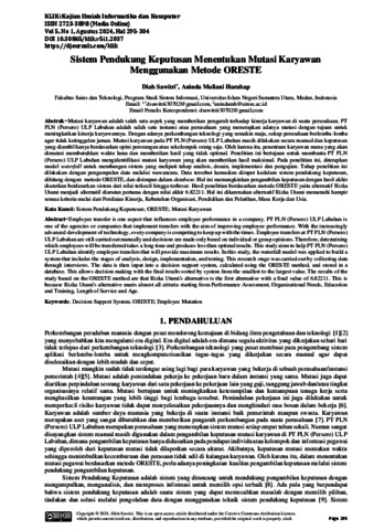 Sawitri, Diah and Muliani, Aninda Sistem Pendukung Keputusan Menentukan Mutasi Karyawan Menggunakan Metode ORESTE. KLIK: Kajian Ilmiah Informatika dan Komputer.