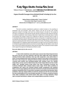 Mutiara, Rahmi and Yuslem, Nawir Urgensi Memilih Pasangan Setara (Sekufu’) Studi Terhadap Q.S An-Nur Ayat 26. R eslaj: Religion Education Social Laa Roiba Journal.