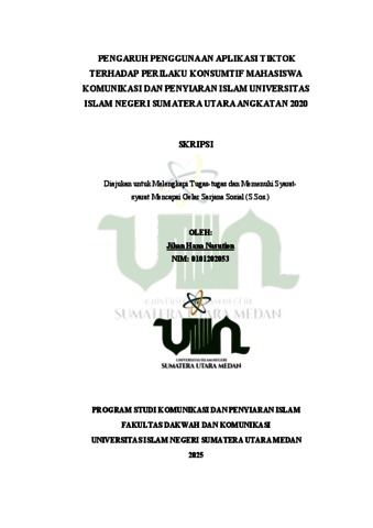 Hana, Jihan (2024) Pengaruh Penggunaan Aplikasi Tiktok Terhadap Perilaku Konsumtif Mahasiswa Komunikasi Dan Penyiaran Islam Universitas Islam Negeri Sumatera Utara Angkatan 2020. Skripsi thesis, Universitas Islam Negeri Sumatera Utara.