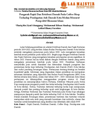 Ziyad, Thariq Bin and Ikhsan, Muhammad and Ilhamy, Muhammad Lathief Pengaruh Pajak Dan Retribusi Daerah Pada Coffee Shop Terhadap Pendapatan Asli Daerah Kota Medan Menurut Perspektif Ekonomi Islam. Jurnal Ekonomi Islam.