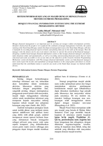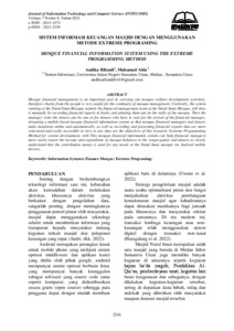 Rifandi, Andika and Alda, Muhamad Sistem Informasi Keuangan Masjid Dengan Menggunakan Metode Extreme Programing. Journal of Information Technology and Computer Science (INTECOMS).