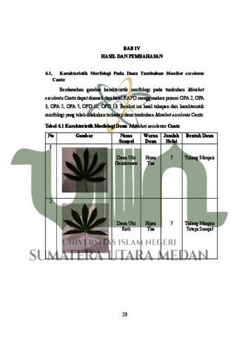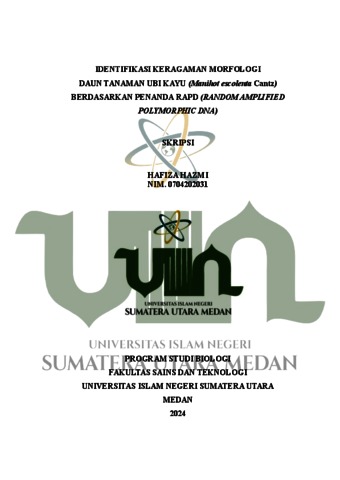 Hazmi, Hafiza (2024) Identifikasi Keragaman Morfologi Daun Tanaman Ubi Kayu (Manihot Escolenta Cantz) Berdasarkan Penanda Rapd (Random Amplified Polymorphic Dna). Skripsi thesis, universitas islam negeri sumatera utara.