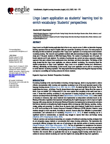 Solin, Ramadhan and Salmiah, Maryati Lingo Learn application as students' learning tool to enrich vocabulary: Students’ perspectives. English Learning Innovation (englie), 6(1), 2025, 166 - 17.