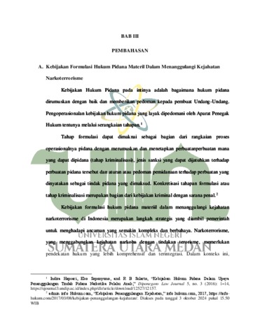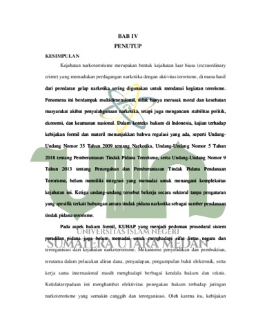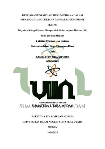 Nisa, Kamilatun (2025) Kebijakan Formulasi Hukum Pidana Dalam Menanggulangi Kejahatan Narkoterorisme. Skripsi thesis, universitas islam negeri sumatera utara.