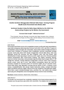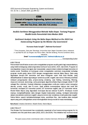 Nazla, Nurwana and Kurniawan, Rakhmat Analisis Sentimen Menggunakan Metode Naïve Bayes Tentang Program Mudik Gratis Pemerintah Kota Medan 2024 Sentiment Analysis Using the Naïve Bayes Method on the 2024. CESS (Journal of Computer Engineering, System and Science).