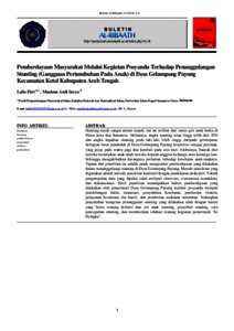 Fitri, Laila and Surya, Maulana Andi Pemberdayaan Masyarakat Melalui Kegiatan Posyandu Terhadap Penanggulangan Stunting (Gangguan Pertumbuhan Pada Anak) di Desa Gelumpang Payung Kecamatan Ketol Kabupaten Aceh Tengah. Buletin Al-Ribaath 21 (2024) 1-6.