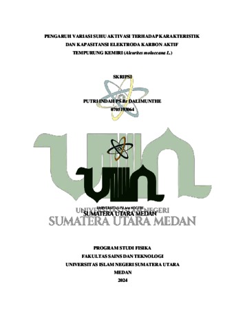 Indah, Putri (2024) Pengaruh Variasi Suhu Aktivasi Terhadap Karakteristik Dan Kapasitansi Elektroda Karbon Aktif Tempurung Kemiri (Aleurites Moluccana L.). Skripsi thesis, universitas islam negeri sumatera utara.