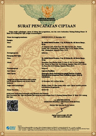 Abdul Fattah Nasution (2025) Surat Pencatatan Ciptaan Laporan Penelitian Penerapan Sistem Pembelajaran Adaptif Berbasis AI dalam Meningkatkan kompetensi Guru Pendidikan Agama Islam di Labuhanbatu. EC002025194532.