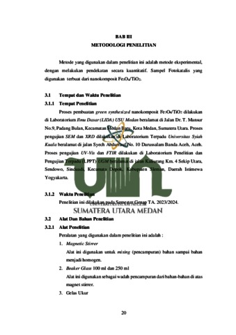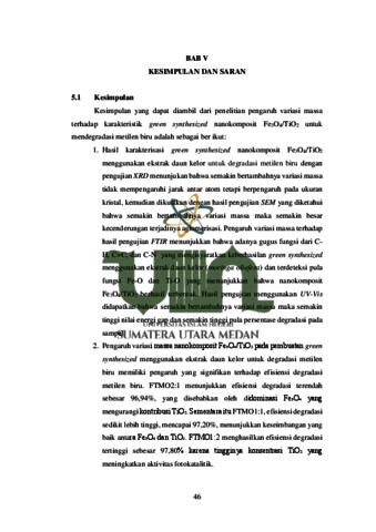 AGELIA, DINDA (2024) Pengaruh Variasi Massa Green Synthesized Nanokomposit Fe3o4/Tio2 Menggunakan Ekstrak Daun Kelor (Moringa Oleifera) Untuk Degradasi Metilen Biru. Skripsi thesis, universitas islam negeri sumatera utara.