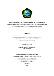 Nasution, Faisal Abda’u (2018) Strategi Siswa Menyelesaikan Soal Cerita pada Materi Persamaan dan Pertidak Samaan Satu Variabel Yayasan Pendidikan Pajar Dolok Masihul. Skripsi thesis, UIN Sumatera Utara.