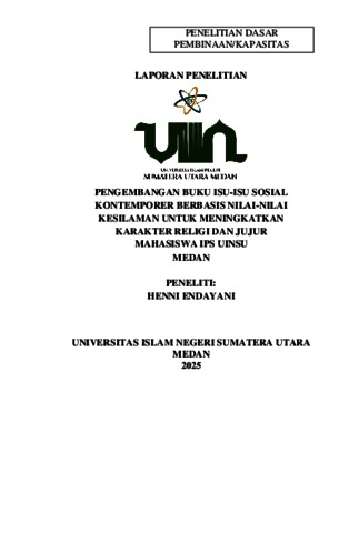 Endayani, Henni (2025) Laporan Penelitian Pengembangan Buku Isu-isu Sosial Kontemporer Berbasis Nilai-nilai Keislaman untuk Meningkatkan Karakter Religi dan Jujur Mahasiswa IPS UINSU Medan. Universitas Islam Negeri Sumatera Utara, Medan.