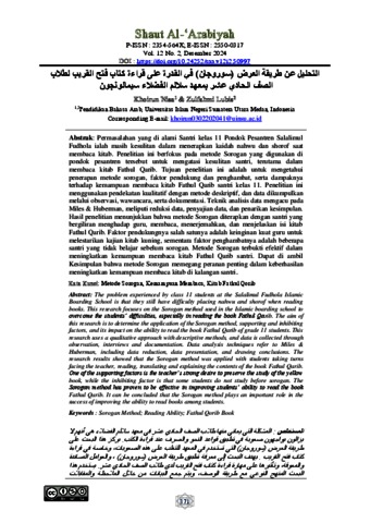 Nisa, Khoirun and Zulfahmi, Zulfahmi بلاطل بيرقلا حتف باتك ةءارق ىلع ةردقلا يف نوجنولاميس ءلاضفلا مللاس )ناجوروس( ضرعلا ةقيرط نع ليلحتلا. Shaut Al-‘Arabiyah. ISSN P-ISSN : 2354-564X; E-ISSN : 2550-0317