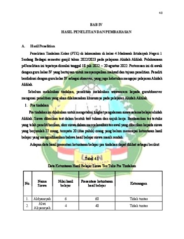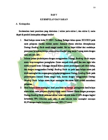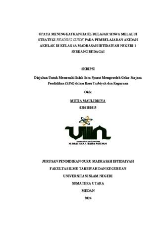 Mauliddiya, Mutia (2024) Upaya Meningkatkan Hasil Belajar Siswa Melalui Strategi Reading Guide pada Pembelajaran Akidah Akhlak di Kelas 4A Madrasah Ibtidaiyah Negeri 1 Serdang Bedagai. Skripsi thesis, universitas islam negeri sumatera utara.