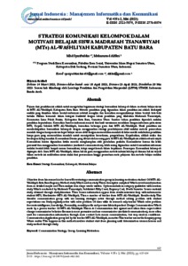 Syarifuddin, Mhd and Alfikri, Muhammad Strategi Komunikasi Kelompok dalam Motivasi Belajar Siswa Madrasah Tsanawiyah (Mts) Al-Washliyah Kabupaten Batu Bara. Jurnal Indonesia : Manajemen Informatika dan Komunikasi, 4 (2). ISSN 2723-7079