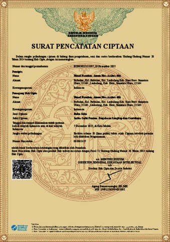 Nimel Nasution (2025) Surat Pencatatan Ciptaan Buku Saku Serba-Serbi Pantun: Penjelasan Lengkap dan Contohnya. EC002025221197.