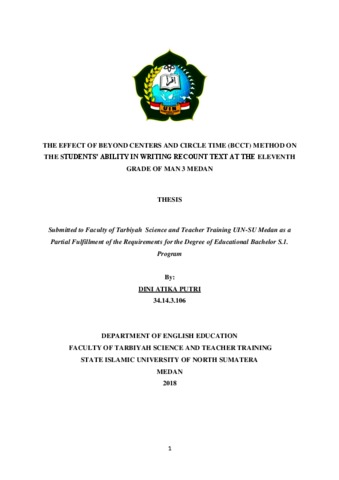 The Effect of Beyond Centers and Circle Time (BCCT) Method on the Students’ ability in Writing Recount Text at the Eleventh grade of MAN 3 Medan