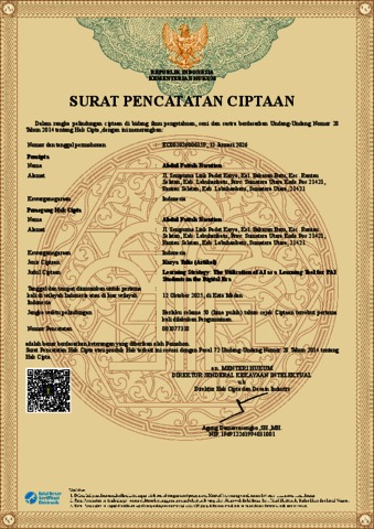 Abdul Fattah Nasution (2025) Surat Pencatatan Ciptaan Artikel Learning Strategy: The Utilization of AI as a Learning Tool for PAI Students in the Digital Era. EC002026006359.