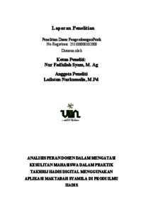 Syam, Nur Fadhilah (2025) Analisis Peran Dosen Dalam Mengatasi Kesulitan Mahasiswa Dalam Praktik Takhrij Hadis Digital Menggunakan Aplikasi Maktabah Syamila di Prodi Ilmu Hadis. Universitas Islam Negeri Sumatera Utara.