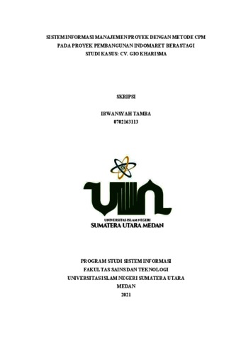 Padli, Irwan and Triase, Triase (2021) Sistem Informasi Manajemen Proyek Dengan Metode CPM Pada Proyek Pembangunan Indomaret Berastagi; Studi Kasus: CV. Gio Kharisma. Skripsi thesis, universitas islam negeri sumatera utara.